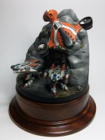 Bits I am really pleased with are the cliff face, the door and the troops breaking into the mountain stronghold. Also, despite the issues I had painting the orange and white (I wanted it a lot smoother than it is), I am pleased with the colour combination!
