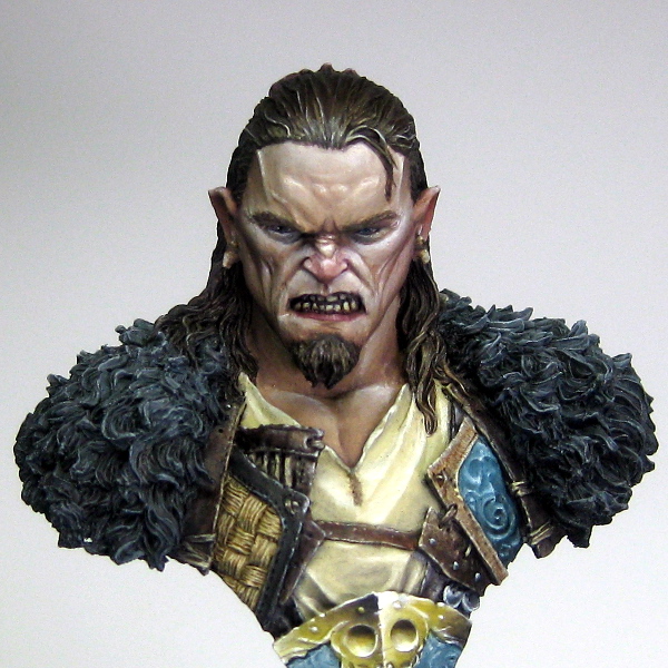 I don’t have that particular model, but I really liked the techniques being taught and wanted to try them right away so I grabbed something from my shelf that has been waiting for paint for a little while to give it a go. The Model was an out of production bust by Mproyec of an angry looking wild elf-type (the sort that puts Legolas to shame)… this guy: