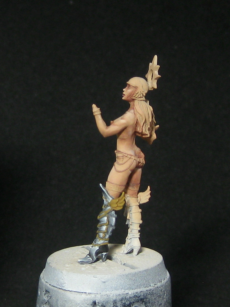 I started with XV-88 and painted all the intended gold areas on her leg with a nice flat, even coverage.