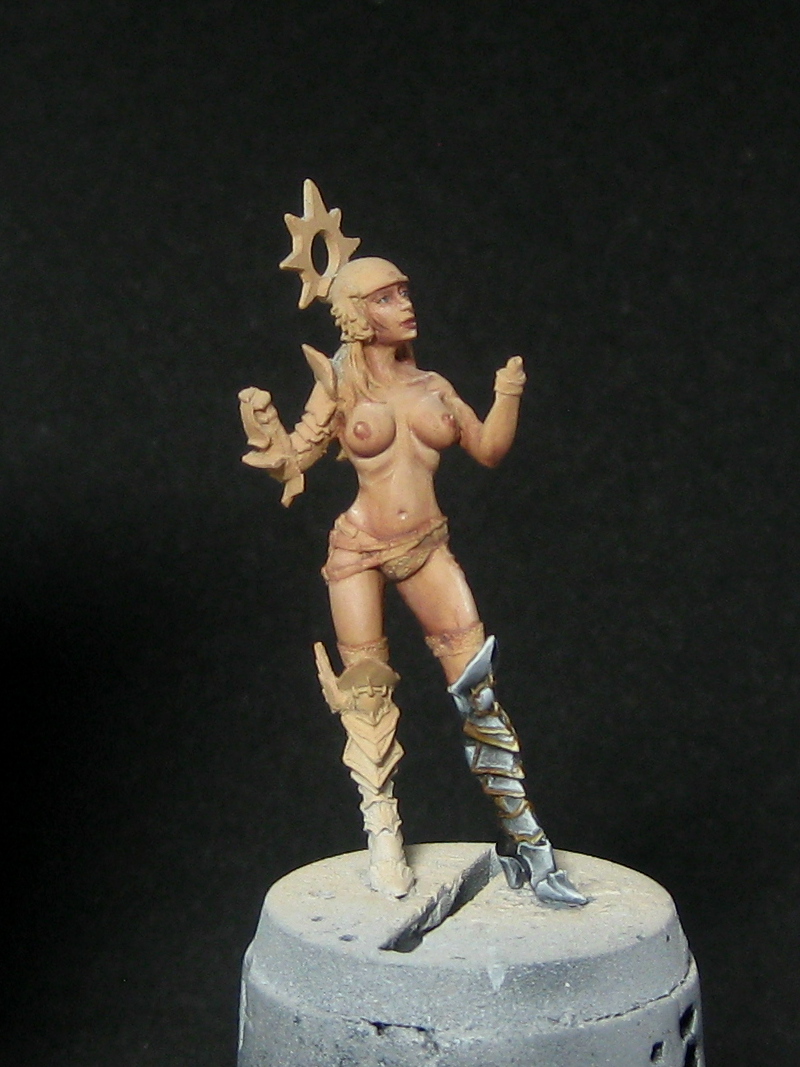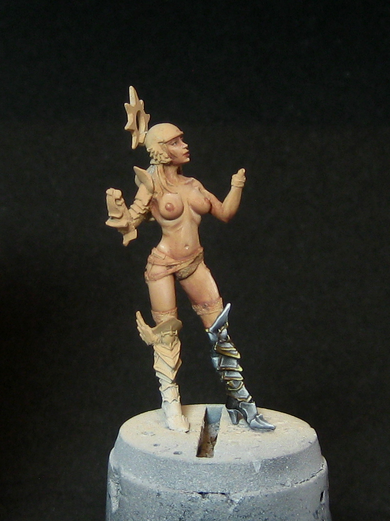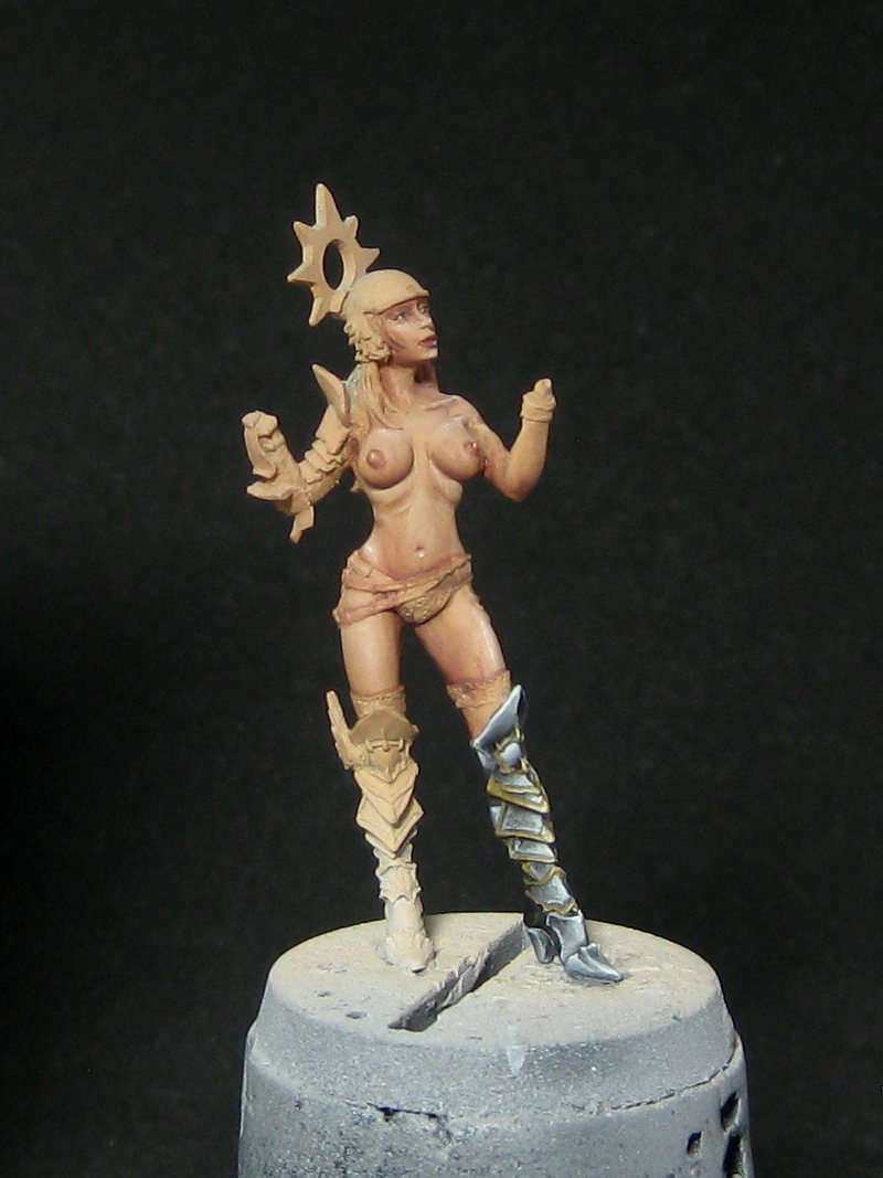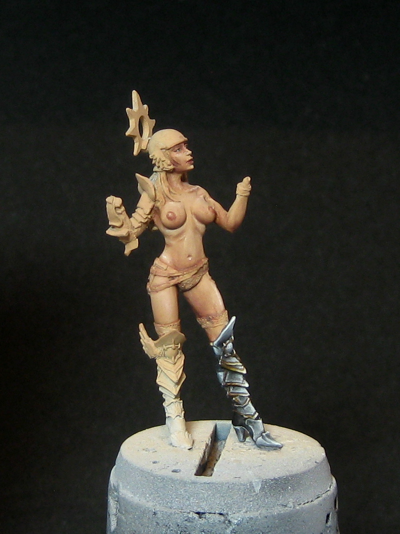 At this point, the gold is done. The next step is to finish the rest of the metal areas (both Gold and Steel) and then start looking at painting the tattoos…